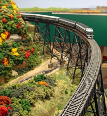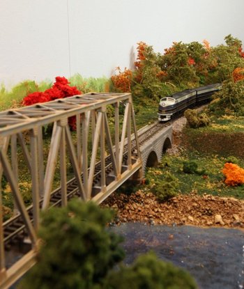 The New York, Pennsylvania and Ohio Central RR is a mythical merger of the New York Central, Pennsy and B&O railroads, and is set primarily in Ohio. The layout is designed for operations and the track plan is essentially a single track mainline with passing sidings and hidden staging yards at each end. The average train length is 20 to 25 cars. Construction of the layout started in September 2006 and the Golden Spike was driven in September 2010. The Peco turnouts originally used in the layout are being slowly replaced with scratch built turnouts. To date 100 of the 127 turnouts have been built and installed. The most notable changes since last year is the expansion of the sceniced portions of the layout.