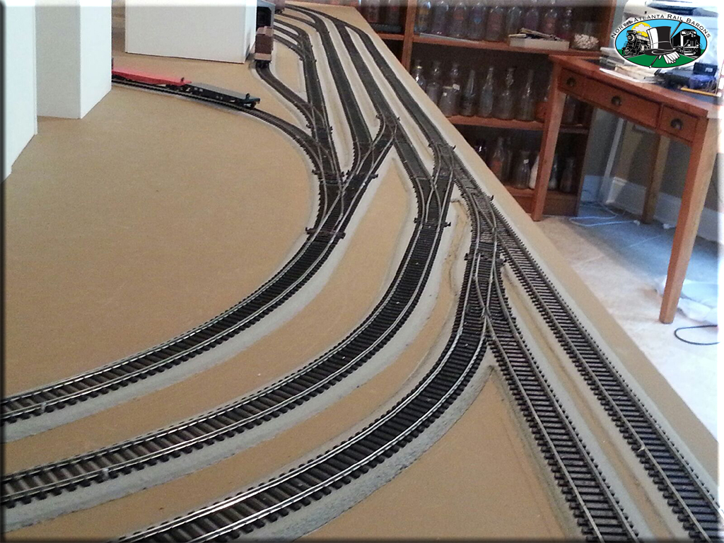 Boyd's railroad has taken shape since then mostly because of his own efforts, but the Rail Barons have had several operating sessions on it, and only a couple of trackage problems were identified. Operating sessions are a great way to locate trouble spots that need corrective action. After discussions with several of our more experienced members, Boyd has made four track modifications to correct them.
